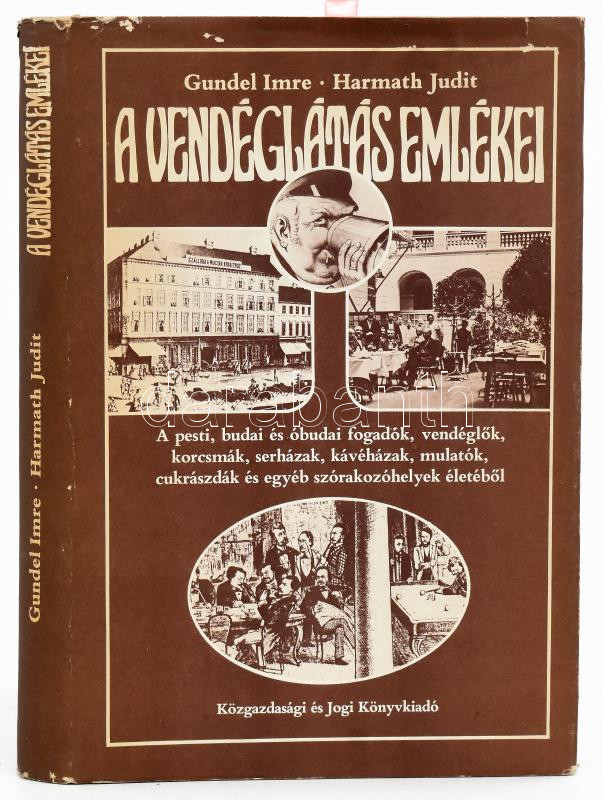 Gundel Imre - Harmath Judit: A vendéglátás emlékei. A pesti, budai, óbudai fogadók, vendéglők, korcsmák, serházak, kávéházak, mulatók, cukrászdák és egyéb vendéglátóhelyek életéből. (DEDIKÁLT). Bp, 1979, Közgazdasági és Jogi. Első kiadás. Kiadói egészvászon-kötés, minimálisan sérült kiadói papír védőborítóban. A könyv egyik szerzője, Gundel Imre (1927-1993) vendéglős, muzeológus, gasztronómiai író által DEDIKÁLT példány.