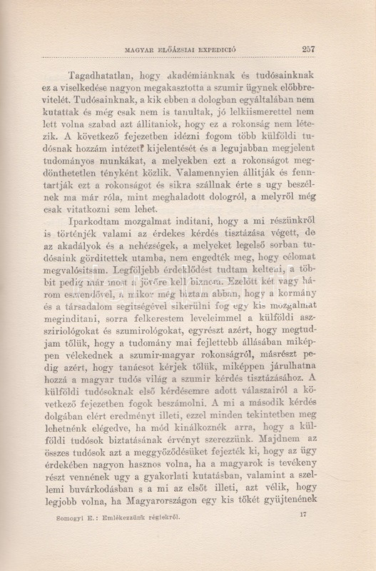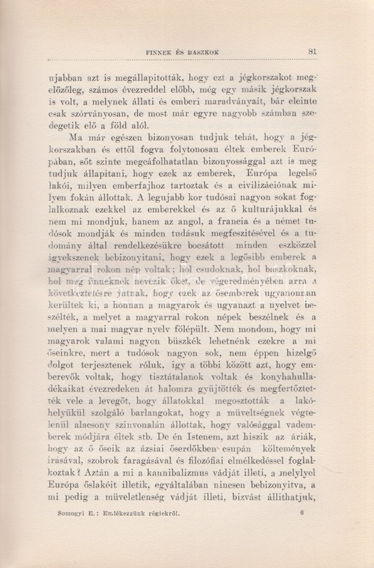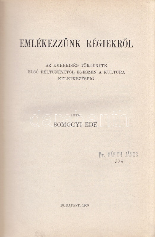 Somogyi (született Frankl) Ede újságíró, szerkesztő, szótáríró őstörténeti munkája újságírói igényességgel ered az emberiség régmúltjának eltűnt civilizációinak nyomába. Műve előszava szerint értekezésének fő célja a turáni magyarság európai őshonosságának és elsőségének megállapítása, szembeszállva az Akadémia által képviselt elméletekkel. A tartalomból: A legrégibb ember - A barlanglakók - Eltűnt világrészek (Lemuria, Atlantisz) - A kőkorszak embere - Kjökkenmöddingek és terramárék - Ninive - Az ékírás megfejtése - Szumirok - Szumirok és magyarok - Az etruszkok - A hikszoszok - A magyar nemzet megalakulása.