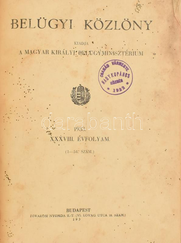 1929-1933 A Belügyi Közlöny fél évfolyamai egybekötve (3 kötet): XXXIV... https://www.darabanth.com/de/466-Fernauktion/466.0/Bucher/Bucher-Jura~500049/1929-1933-A-Belugyi-Kozlony-fel-evfolyamai-egybekotve-3-kotet-XXXIV-1929-evf-1-29-s~II3124443