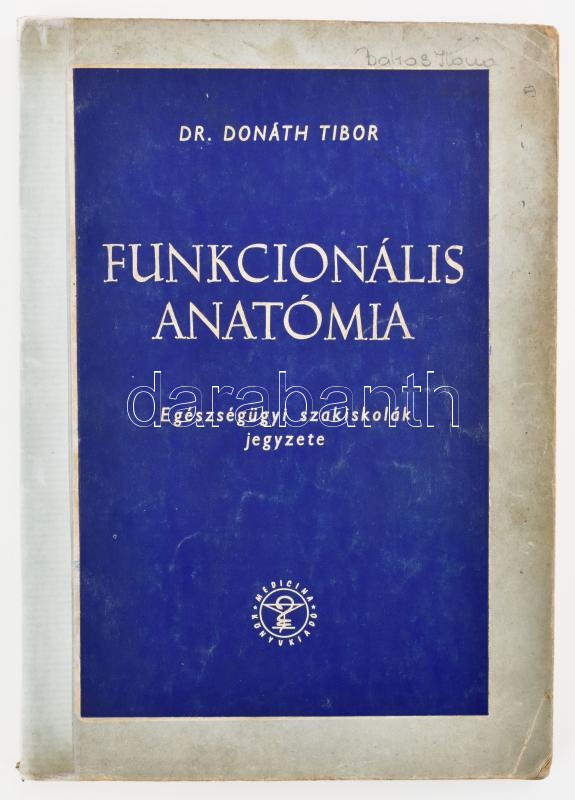 Donáth Tibor: Funkcionális anatómia. Egészségügyi szakiskolák szakjegyzete. Bp., 1959, Medicina. Kiadói papírkötés, kopott, foltos borítóval, ceruzás aláhúzásokkal. Megjelent 1100 példányban.