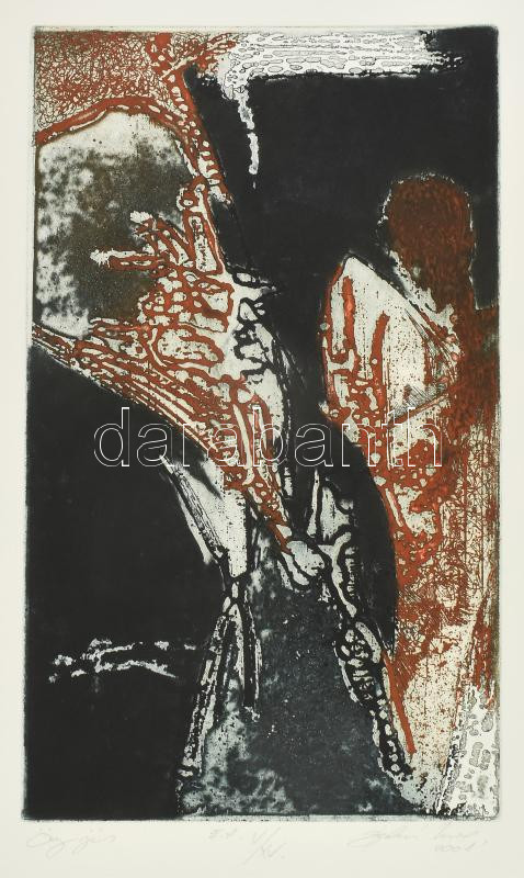 Beschreibung: Bodnár Imre (1959-): Olvashatatlan címmel (öreg jós?), 2001. Rézkarc, papír, jelzett. Művészpéldány E.A. V/XV. számozással. 33×19,5 cm