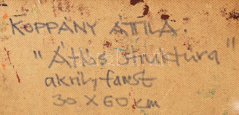 Beschreibung: Koppány Attila (1947-): Átlós struktúra, 2019. Akril, dófarost. Jelezve jobbra lent, a hátoldalán autográf felirattal. Fakeretben. 30x60 cm.