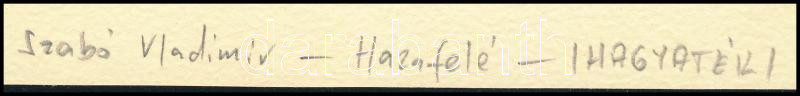 Beschreibung: Szabó Vladimir (1905-1991): Hazafelé. Rézkarc, papír, jelzett. Jobb alsó sarkában apró folttal. 14,5x17,5 cm.