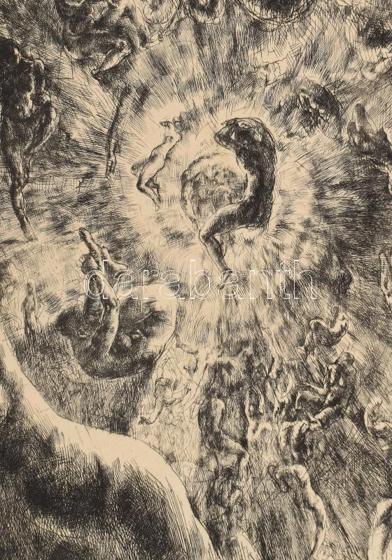 Varga Nándor Lajos (1895-1978): Melancholia - Ősanyag, 1926. Rézkarc, papír, jelzett, kartonra kasírozva, 44,5×39 cm. Hátoldalán Nemzeti Szalon kissé töredékes raglapjával. Varga Nándor Lajos egyik kiváló, korai grafikája!