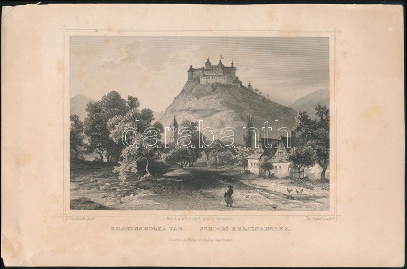 cca 1850-1860 Ludwig Rohbock (1820-1883) - Johann Poppel (1807-1882): Krasznahorka vára. Acélmetszet, papír, jelzett a metszeten, kis lapszéli sérülésekkel, kissé foltos, 13,5x17,5 cm