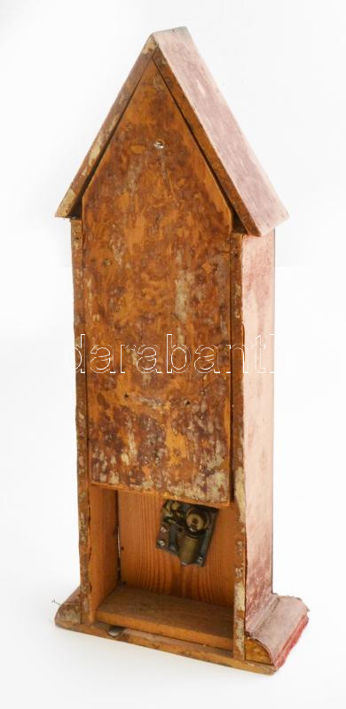 Beschreibung: Antik kegytárgytartó házioltár. Eredetileg órával és zenszerkezettel, melyhez megvan a kulcs. Sérülésekkel, 64x25x12 cm