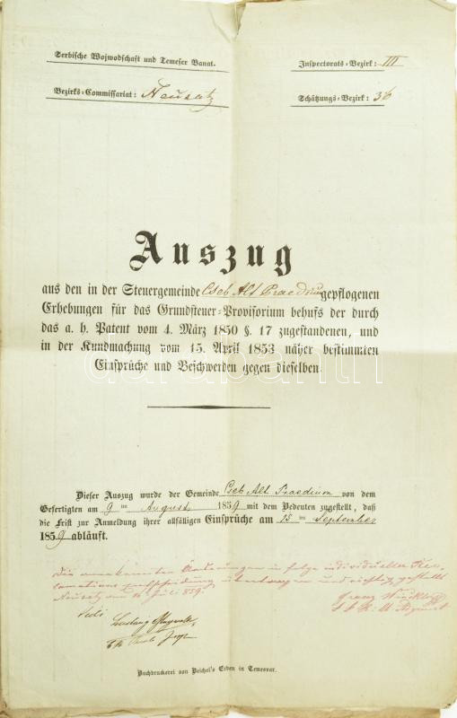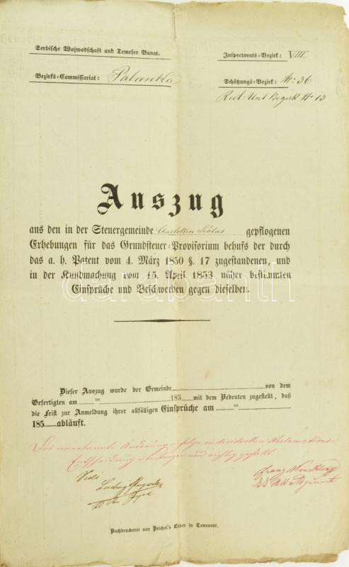 1850 bevezetett földadó kimutatása palánkai és újvidéki birtok vonatko... https://www.darabanth.com/de/466-Fernauktion/466.0/Kunst-Dokumente-andere-Sammelgebiete/Dokument~20/1850-bevezetett-foldado-kimutatasa-palankai-es-ujvideki-birtok-vonatkozasaban-ket-okmany~II3147209