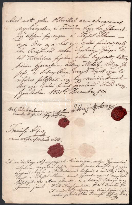 1851 Nagyszombat Littvay Appolónia örökösödési szerződése viaszpecséte... https://www.darabanth.com/de/466-Fernauktion/466.0/Kunst-Dokumente-andere-Sammelgebiete/Dokument~20/1851-Nagyszombat-Littvay-Appolonia-orokosodesi-szerzodese-viaszpecsetekkel~II3147722