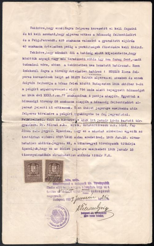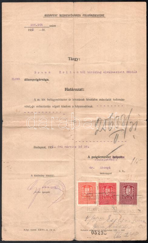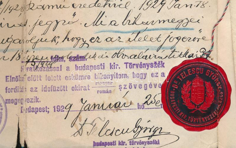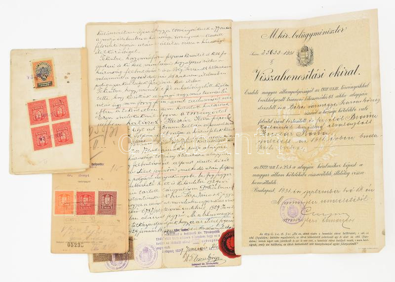 1929-1931 Erdélyi magyar személy visszahonosítási okiratai, 4 db, közte román nyelvű irat és annak magyar fordítása, magyar ill. román okmánybélyegekkel