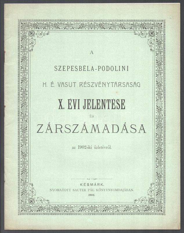 1903 A Szepesbéla-podolini H. É. Részvénytársaság X. évi jelentése és ... https://www.darabanth.com/de/466-Fernauktion/466.0/Kunst-Dokumente-andere-Sammelgebiete/Drucksachen~500013/1903-A-Szepesbela-podolini-H-E-Reszvenytarsasag-X-evi-jelentese-es-zarszamadasa-az-19~II3142762