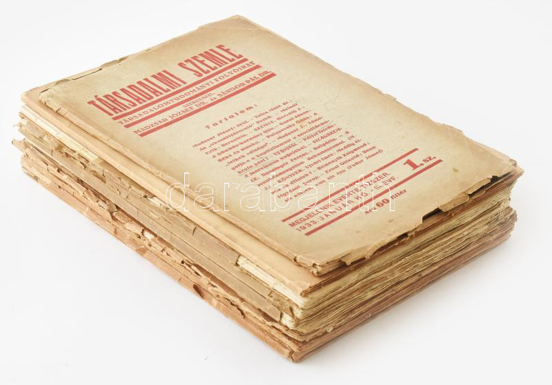 1907-1928 A Századunk. Társadalomtudományi szemle. szerk: Vámbéry Rusztem és Varró József. 10 db szórvány száma + 1933 Társadalmi szemle III. évf. I. szám. A számok vegyes állapotba, egy borító félig hiányzik.