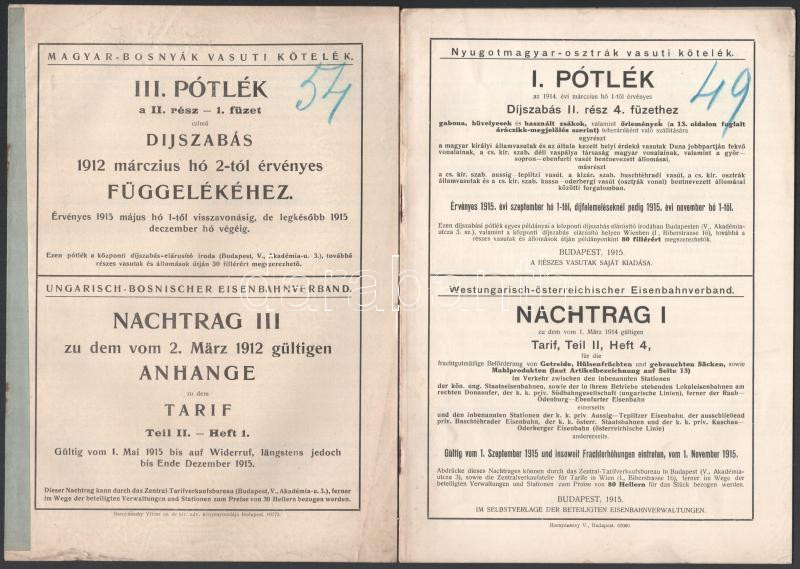 1912-1915 4 db vasúti menetrend pótlék https://www.darabanth.com/de/466-Fernauktion/466.0/Kunst-Dokumente-andere-Sammelgebiete/Drucksachen~500013/1912-1915-4-db-vasuti-menetrend-potlek~II3142736