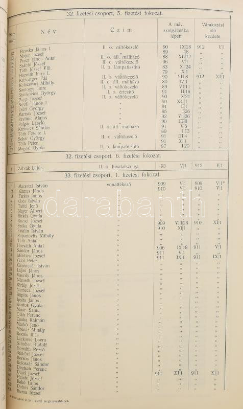 1913 Magyar Királyi Államvasutak - A szombathelyi üzletvezetőség "B" táblázatába tartozó alkalmazottainak rangsora, melléklet a "Hivatalos Lap-hoz", gyűrődésekkel