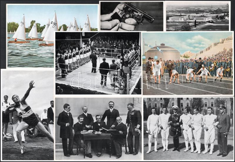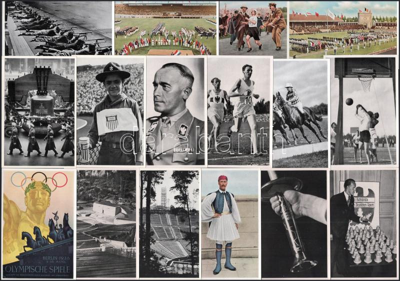 Beschreibung: 1936 Berlini olimpia, 83 db gyűjtőkép, 11 db 17×12 cm és 72 db 12×8 cm