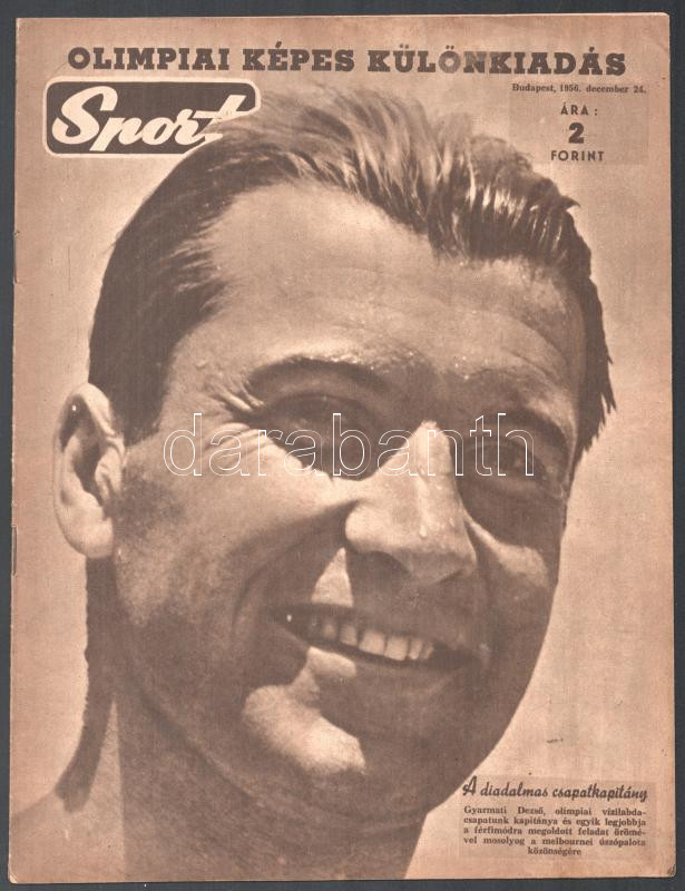 1956 Sport, olimpiai képes különkiadás, 1956. dec. 24. A címlapon Gyar... https://www.darabanth.com/de/466-Fernauktion/466.0/Kunst-Dokumente-andere-Sammelgebiete/Drucksachen~500013/1956-Sport-olimpiai-kepes-kulonkiadas-1956-dec-24-A-cimlapon-Gyarmati-Dezso-vizilabdazC3~II3146552