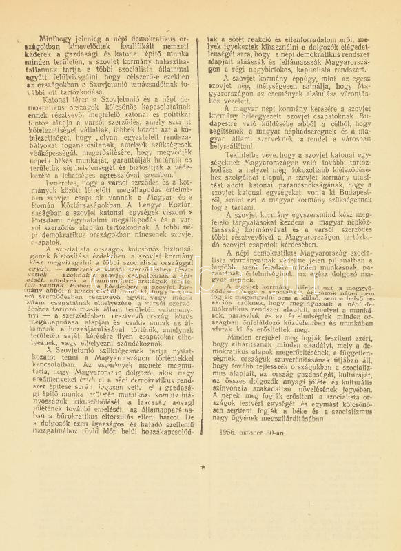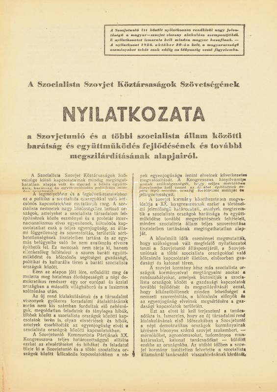 A Szocialista Szovjet Köztársaságok Szövetségének nyilatkozata. 1956. ... https://www.darabanth.com/de/466-Fernauktion/466.0/Kunst-Dokumente-andere-Sammelgebiete/Drucksachen~500013/A-Szocialista-Szovjet-Koztarsasagok-Szovetsegenek-nyilatkozata-1956-oktober-30-an-Forradal~II3112240