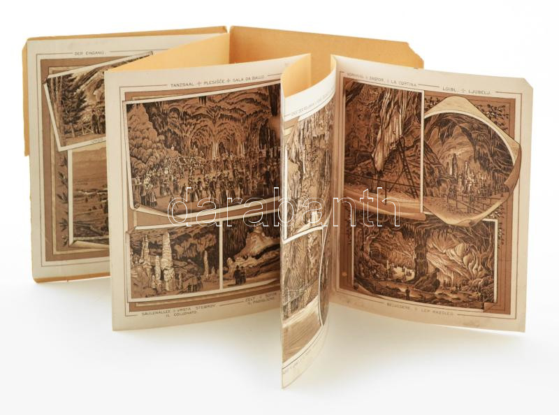 Beschreibung: cca 1890-1900 Adelsberger Grotte / Postojnska Jama (Postojnai cseppkőbarlang), litho képes leporelló, kis sérülésekkel, kihajtva: 67x13,5 cm