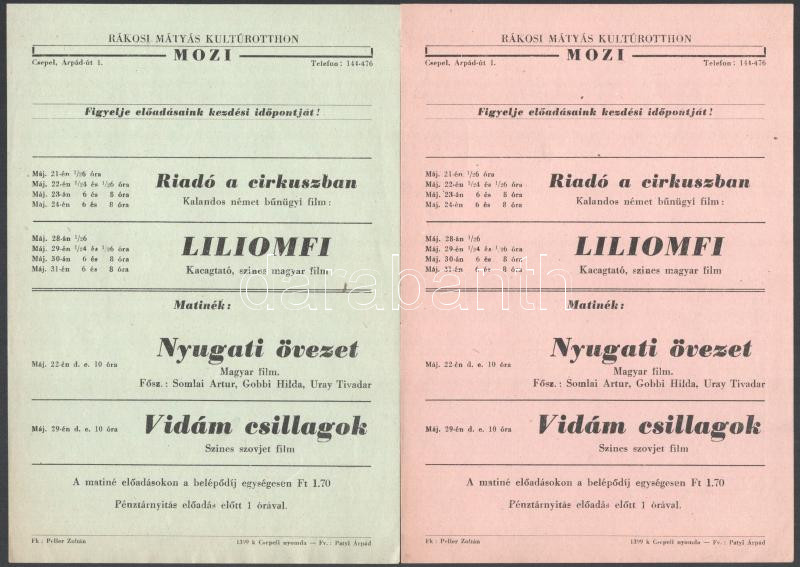 cca 1950-1960 Színpadi és mozi szöveges falragaszok, szórólapok, 4 db https://www.darabanth.com/de/466-Fernauktion/466.0/Kunst-Dokumente-andere-Sammelgebiete/Drucksachen~500013/cca-1950-1960-Szinpadi-es-mozi-szoveges-falragaszok-szorolapok-4-db~II3148729