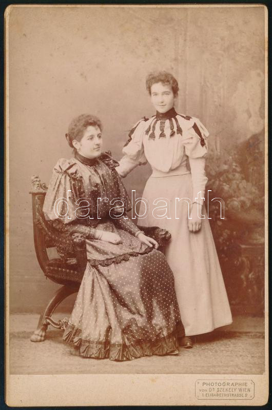 1894 Czullik Betti és Czullik Inez, Czullik Ágost, a Liechtenstein hercegi kertek igazgatója lányainak fotója, kabinetfotó Dr. Székely bécsi műterméből, 16,5x10,5 cm