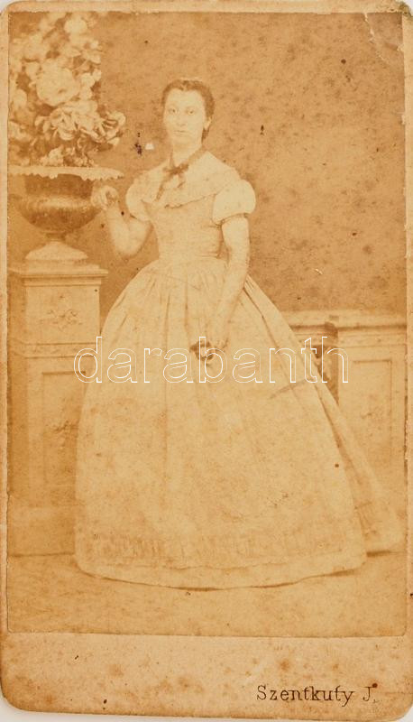 cca 1860-1870 Úrhölgy egészalakos portréja, vizitkártya Szentkuty Istv... https://www.darabanth.com/de/466-Fernauktion/466.0/Kunst-Dokumente-andere-Sammelgebiete/Foto~23/cca-1860-1870-Urholgy-egeszalakos-portreja-vizitkartya-Szentkuty-Istvan-gyogyszeresz-es-fC3~II3150008