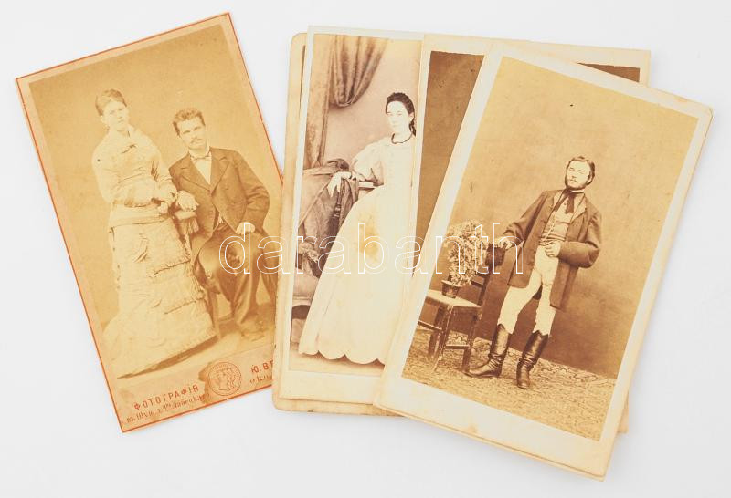 cca 1860-1870 össz. 6 db keményhátú fotó, hölgy, gyerek és férfi portrék, egyik anya gyermekével Záhor Leopold (Lipót) egri műterméből, egy másik cirill betűs felirattal, többi jelzés nélkül, részben kissé foltos, egyiken apró szakadással, 10x6 cm