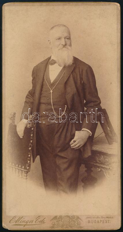 cca 1890-1900 Nagyiday Menyhért (1829-1910) fölbirtokos, és kúriai tiszt, 1848/49-es szabadságharcos (1848 júniusában a Debrecenben alakuló 10. honvédzászlóaljhoz kerül, később a 26. honvédzászlóalj tagja) portréja, keményhátú fotó Ellinger Ede budapesti műterméből, 21×11 cm