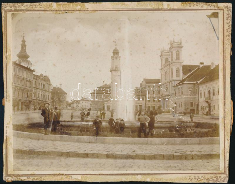 Beschreibung: cca 1910 Besztercebánya (Banská Bystrica), IV. Béla király tér, nagyméretű, kartonra kasírozott fotó, sérült, körbevágott karton, 22,5x17,5 cm
