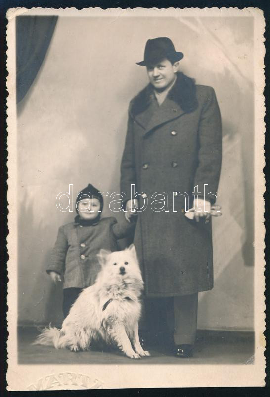 cca 1920-1940 Apa és fia kutyával, fotólap, alja vágott, 12,5x8,5 cm https://www.darabanth.com/de/466-Fernauktion/466.0/Kunst-Dokumente-andere-Sammelgebiete/Foto~23/cca-1920-1940-Apa-es-fia-kutyaval-fotolap-alja-vagott-12-5x8-5-cm~II3140032