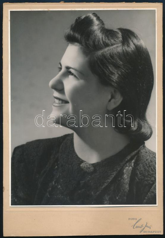 cca 1935Budapest, Laub Juci budapesti fényképész műtermében készült portré, kartonra felragasztva, ezüst zselatinos fotópapíron, 23x17,5 cm, karton 19x28 cm