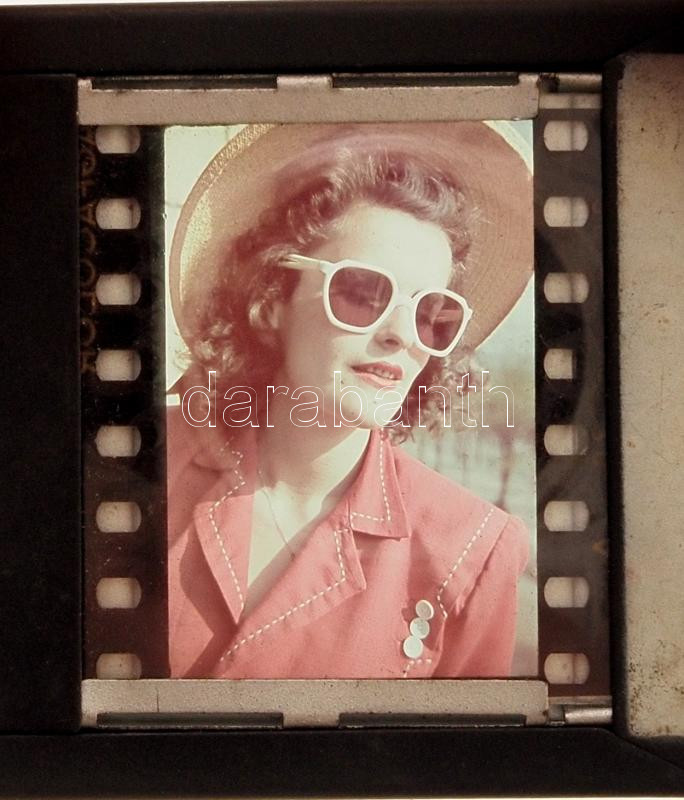 cca 1940-1950 Hölgy napszemüvegben, színes diapozitív, 3,5×2,5 cm https://www.darabanth.com/de/466-Fernauktion/466.0/Kunst-Dokumente-andere-Sammelgebiete/Foto~23/cca-1940-1950-Holgy-napszemuvegben-szines-diapozitiv-3-5C3972-5-cm~II3142622