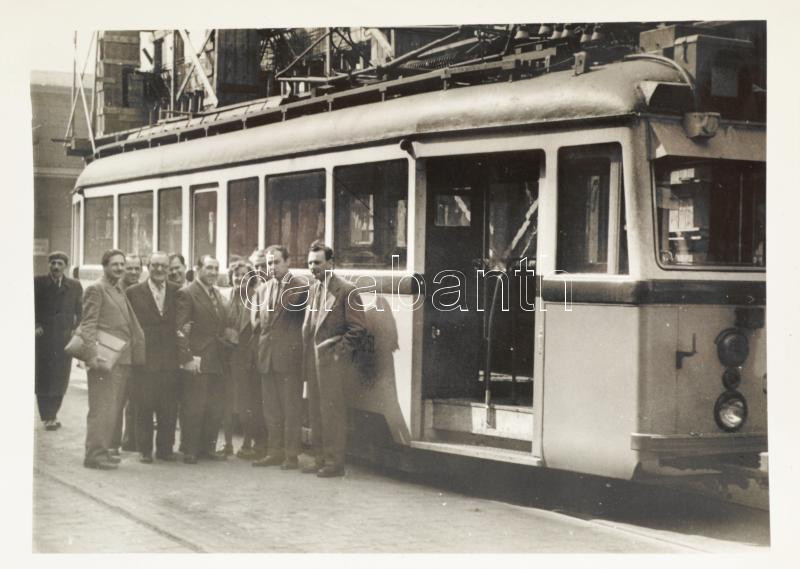 Beschreibung: cca 1970 Villamos fotója feltehetően közlekedési szakemberekkel, fotó, jó állapotban, 9×12 cm
