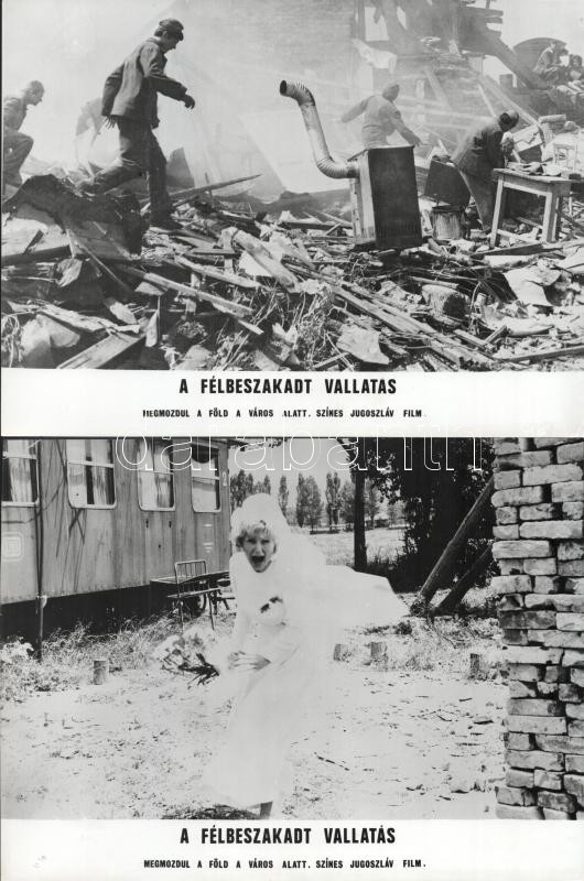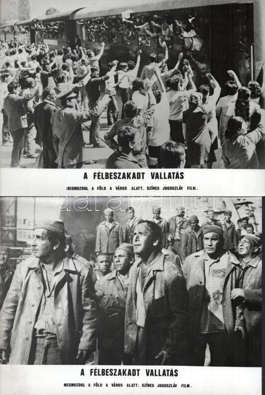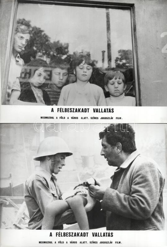 cca 1989 előtti ,,A félbeszakadt vallatás" című jugoszláv film jelenetei és szereplői, 13 db vintage produkciós filmfotó (vitrinfotó, lobbyfotó) ezüst zselatinos fotópapíron, a használatból eredő (esetleges) kisebb hibákkal, 18x24 cm