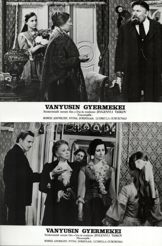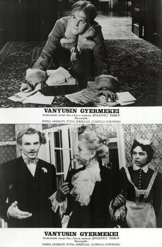 cca 1989 előtti ,,Vanyusin gyermekei" című szovjet film jelenetei és szereplői, 16 db vintage produkciós filmfotó (vitrinfotó, lobbyfotó) ezüst zselatinos fotópapíron, a használatból eredő (esetleges) kisebb hibákkal, 18x24 cm