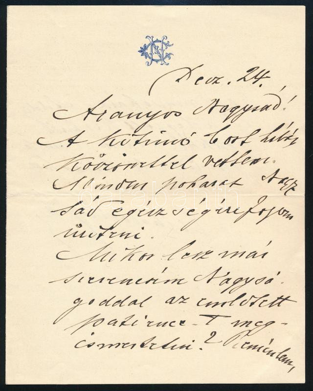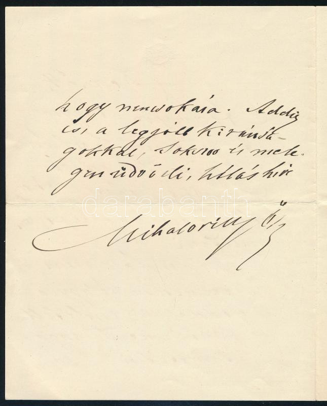 cca 1900 Mihalovich Ödön (1842-1929) zeneszerző, zenepedagógus, a Országos Magyar Királyi Zeneakadémia igazgatójának autográf sorai és aláírása, ismeretlen személy részére.