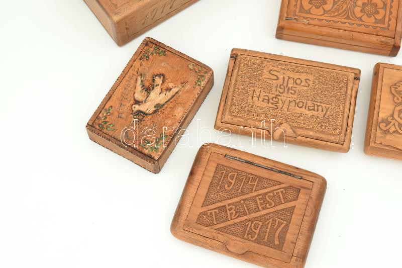 9 darab I. világháborús faragott fa díszdoboz. Több darabon felirat, t... https://www.darabanth.com/de/466-Fernauktion/466.0/Kunst-Dokumente-andere-Sammelgebiete/Militaria~500009/9-darab-I-vilaghaborus-faragott-fa-diszdoboz-Tobb-darabon-felirat-tulajdonos-es-helymegjel~II3148377