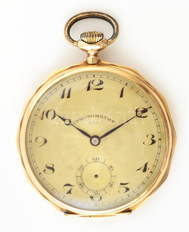 Arany (Au) 14K Chronometre zsebóra, jelzett, működik, d: 5 cm, bruttó:... https://www.darabanth.com/de/466-Fernauktion/466.0/Kunst-Dokumente-andere-Sammelgebiete/Uhren~11/Arany-Au-14K-Chronometre-zsebora-jelzett-mukodik-d-5-cm-brutto-60-g~II3145861