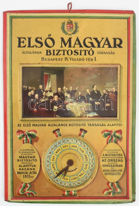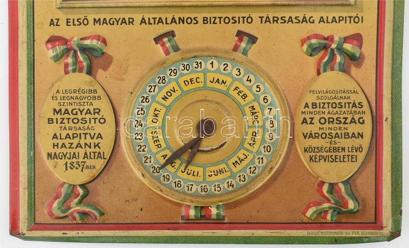 cca 1930 Első Magyar Általános Biztosító. Nagy méretű festett fém tábl... https://www.darabanth.com/de/466-Fernauktion/466.0/Kunst-Dokumente-andere-Sammelgebiete/Werbungen~500053/cca-1930-Elso-Magyar-Altalanos-Biztosito-Nagy-meretu-festett-fem-tabla-fali-naptar-jo~II3148835