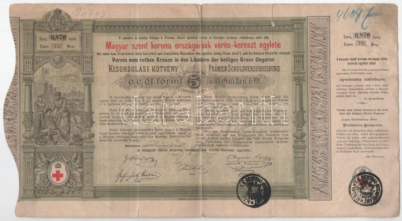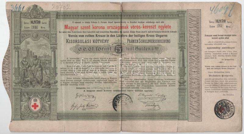 Budapest 1882. "Magyar szent korona országainak vörös-kereszt egy... https://www.darabanth.com/de/466-Fernauktion/466.0/Numismatik/Aktien-und-Tickets~1500006/Budapest-1882-Magyar-szent-korona-orszagainak-voros-kereszt-egylete-kisorsolasi-kotvenye-5F~II3150086