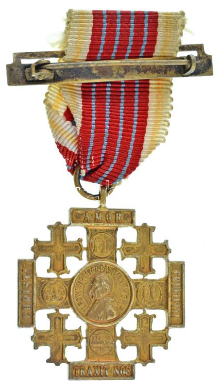 Vatican ~1940-1950. "Medal Of The Holy Land, Pilgrims Jerusalem Cross Of Honour, Gold Grade" gilt, hallmarked Ag decoration with ribbon (br.:~13,85g/0.800/33x33mm) C:AU