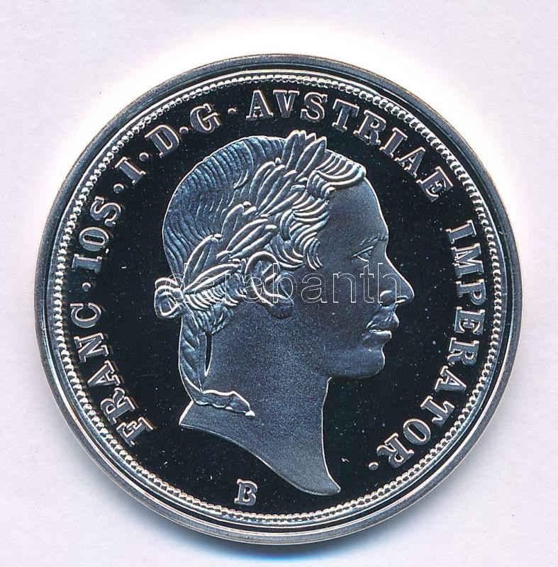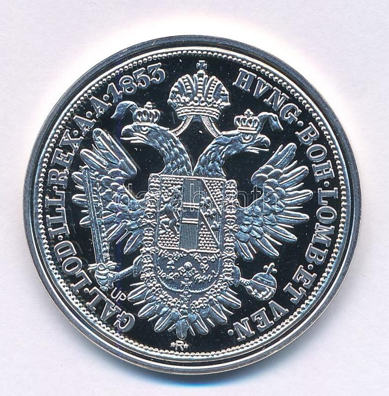 DN "A magyar címer kialakulásának történelme pénzérméken - Ferenc József tallér 1853" ezüstözött fém emlékérem kapszulában, tanúsítvánnyal (38,61mm) T:PP