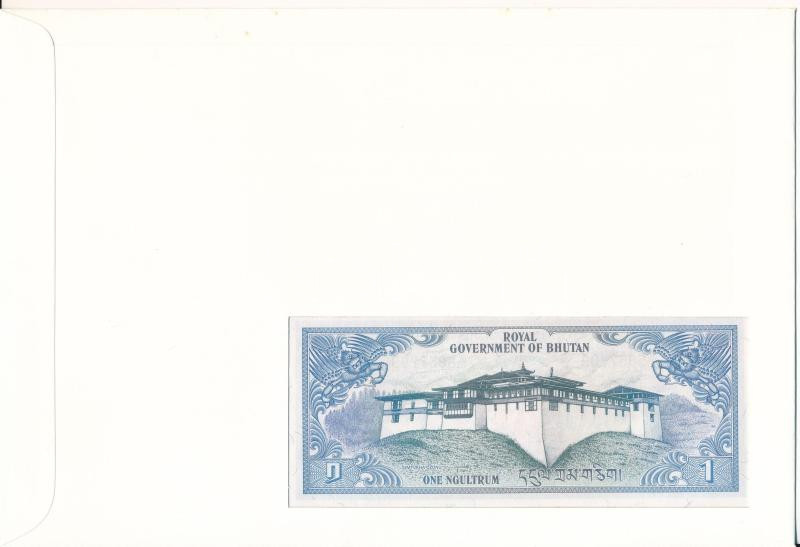 Beschreibung: Bhutan 1N DN (1981-1985). felbélyegzett borítékban, bélyegzéssel T:UNC Bhutan ND (1981-1985). 1 Ngultrum in envelope with stamp and cancellation C:UNC
