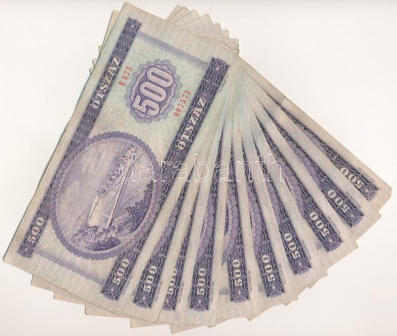 1975. 500Ft (10x) mind különféle sorozatszámmal "E 673 - E 772" között... https://www.darabanth.com/de/466-Fernauktion/466.0/Numismatik/Ungarische-Banknoten~1500008/1975-500Ft-10x-mind-kulonfele-sorozatszammal-E-673-E-772-kozott-T-F-VG-Adamo-F41~II3081141