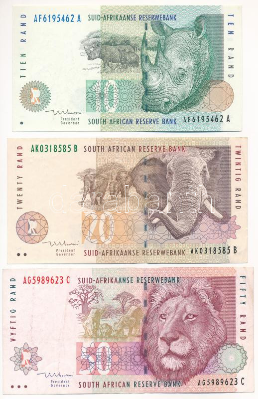 South Africa 19... https://www.darabanth.com/de/466-Fernauktion/466.0/Numismatik/Weltweit-Banknoten~1500015/Del-Afrika-1999-10R-50R-3xklf-T-F-kozte-szep-papirSouth-Africa-1999-10-Rand-50-Rand-3xdiff~II3146967