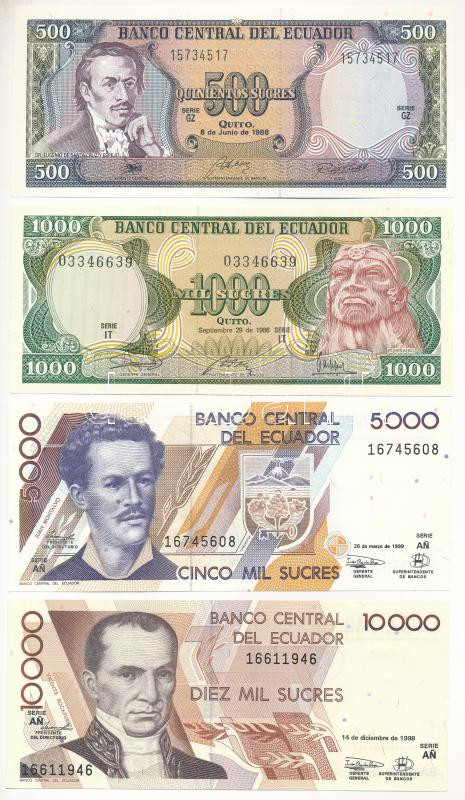 Ecuador 1986-1999. 500 Sucres - 10.000 Sucres (4xdiff) C:UNC,AU