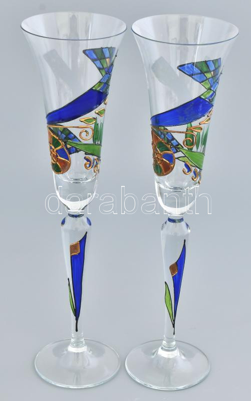 Beschreibung: 2 db kézzel festett üveg váza vagy exkluzív pezsgős pohár, díszdobozban, hibátlan 29 cm