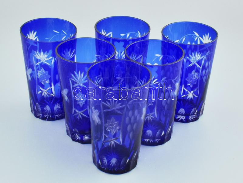 Beschreibung: Dúsan csiszolt kristály kék üdítőspohár szett, 6 db, original dobozban, hibátlan, m: 14,5 cm