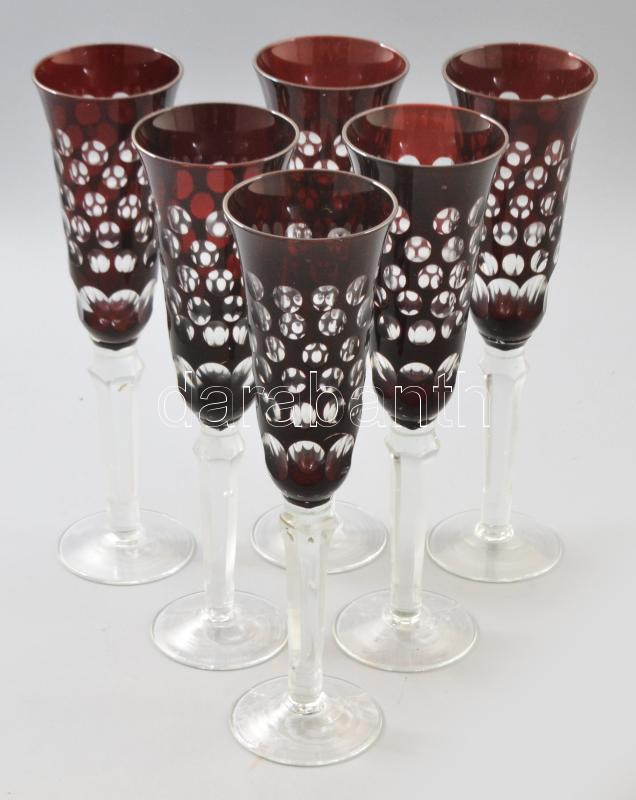 Beschreibung: Dúsan csiszolt kristály vörös pezsgőspohár, 6 db, original dobozban, hibátlan, m: 24 cm