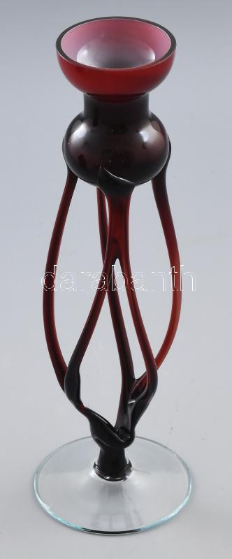 Beschreibung: Jozefina Krosno lengyel iparművész üvegváza, szálakon kapcsolódó többrétegű üveg, talpában anyaghibával, jelzés nélkül, m: 26,5 cm