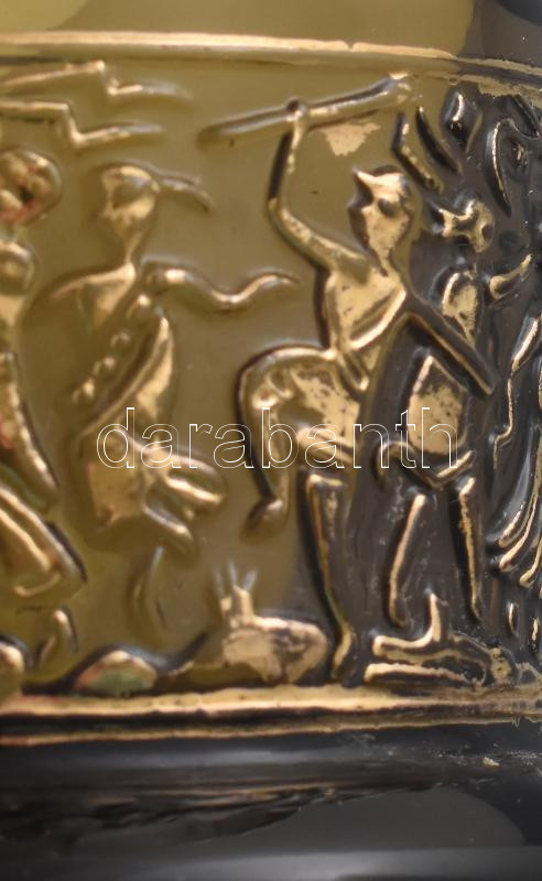 Beschreibung: Moser stílusú váza, körbefutó relief jelenettel, jelzés nélkül, kopással, d: 10,5 cm, m: 9 cm