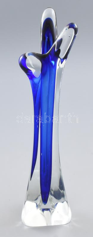 Beschreibung: Murano belül kéken színezett váza. Jelzés nélkül, kis kopással, m: 33,5 cm